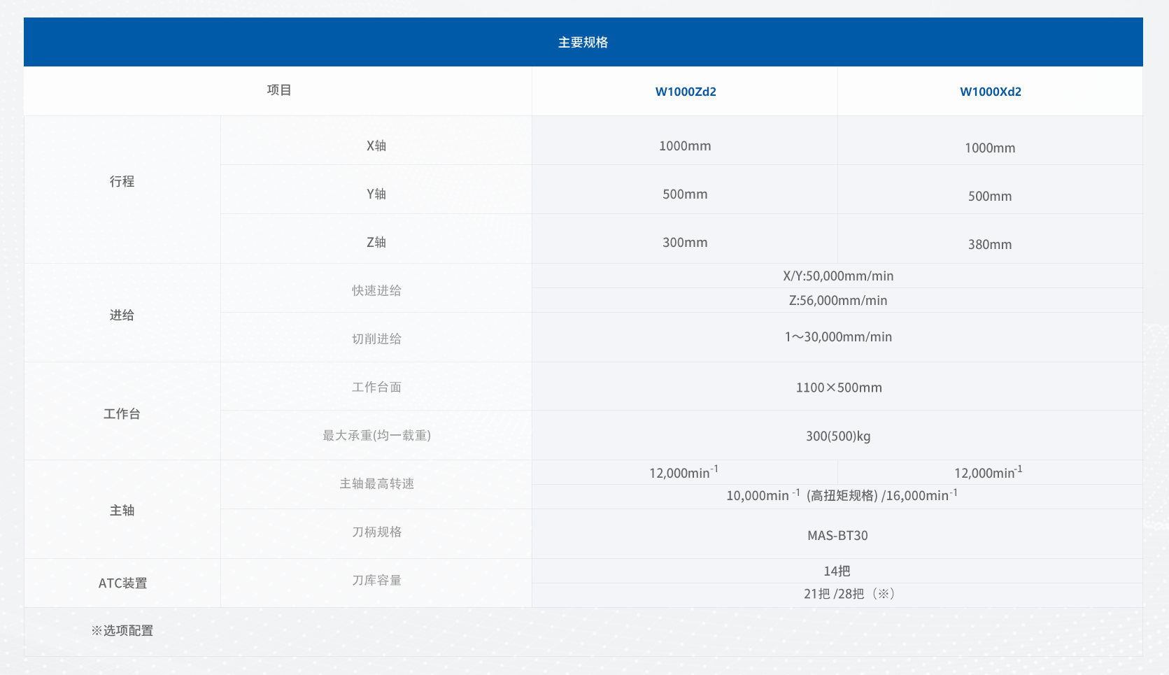 • W1000Zd2/W1000Xd2标准搭载12,000min-1(更大直径主轴)