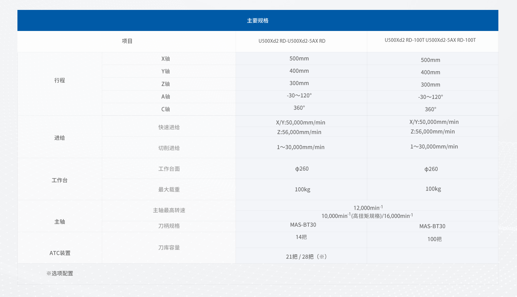 • U500Xd2-100T为标配100把大容量刀库机型
